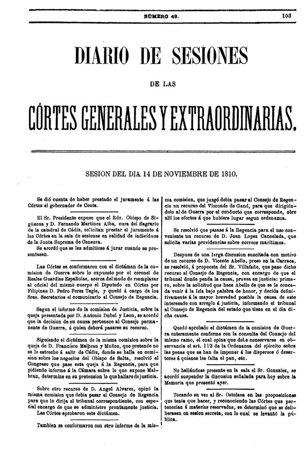 Diario de sesiones de las Cortes Generales y Extraordinarias- 1810Núm. 1 (24-09-1810) al núm. 96 (31-12-1810) |