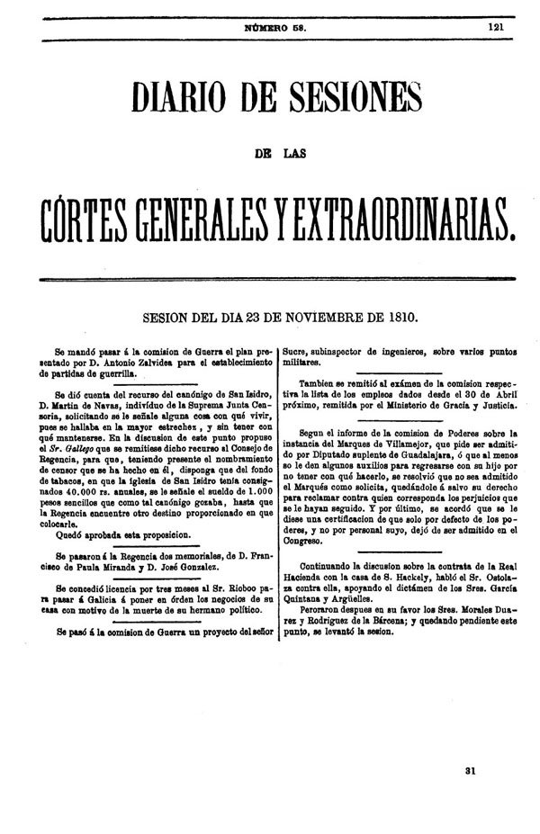 Diario de sesiones de las Cortes Generales y Extraordinarias- 1810Núm. 1 (24-09-1810) al núm. 96 (31-12-1810) |