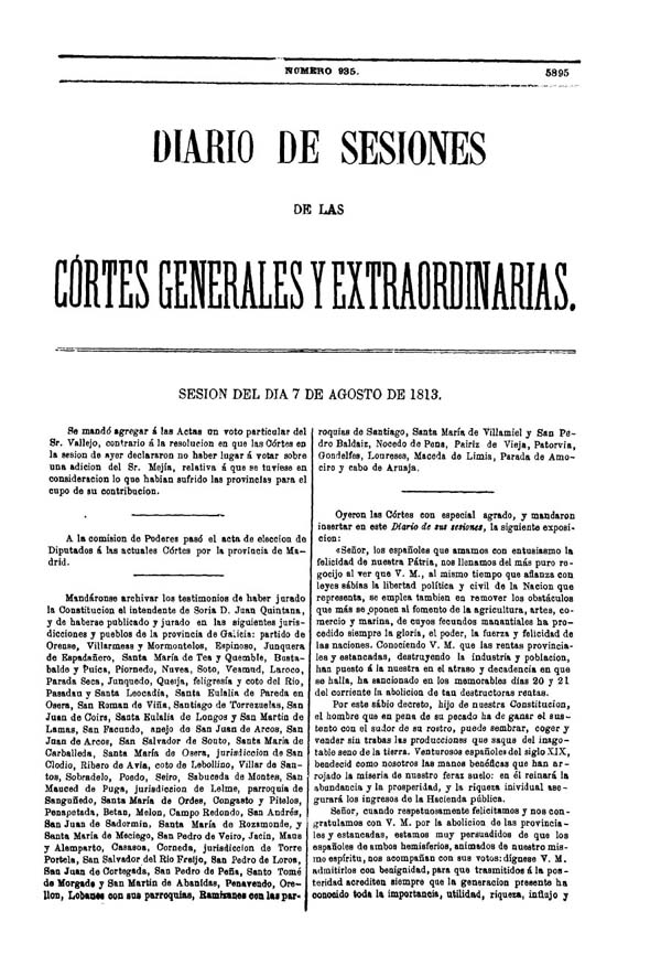 Diario de sesiones de las Cortes Generales y Extraordinarias- 1813Núm. 735 (01-01-1813) al núm. 978 (20-09-1813) |