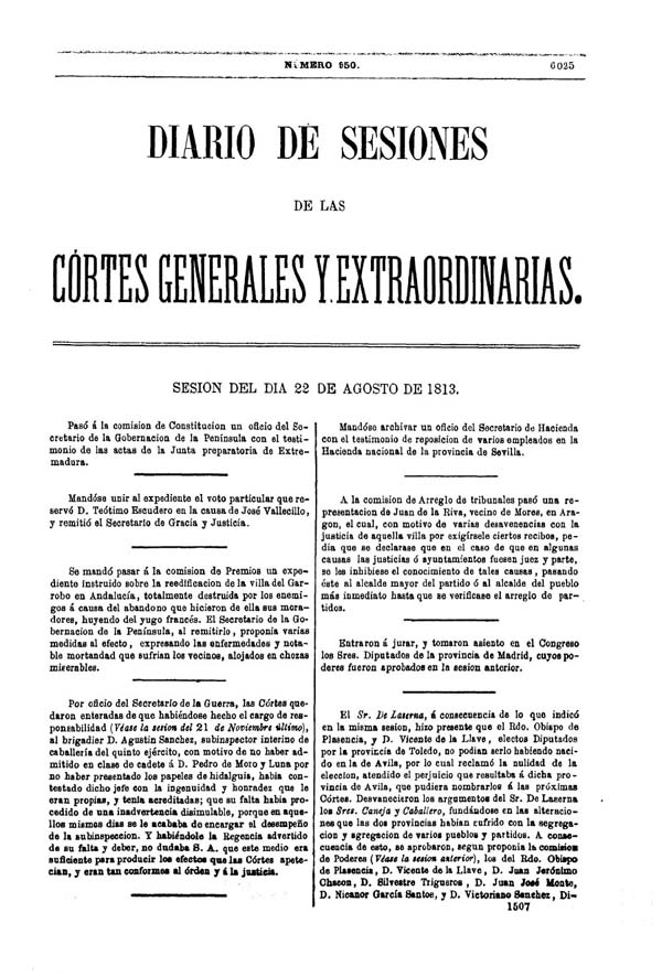 Diario de sesiones de las Cortes Generales y Extraordinarias- 1813Núm. 735 (01-01-1813) al núm. 978 (20-09-1813) |
