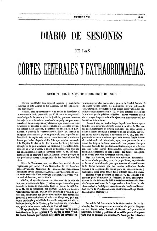 Diario de sesiones de las Cortes Generales y Extraordinarias- 1813Núm. 735 (01-01-1813) al núm. 978 (20-09-1813) |
