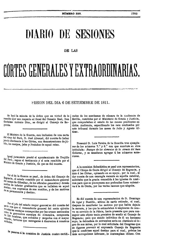 Diario de sesiones de las Cortes Generales y Extraordinarias- 1811Núm. 97 (01-01-1811) al núm. 454 (31-12-1811) |