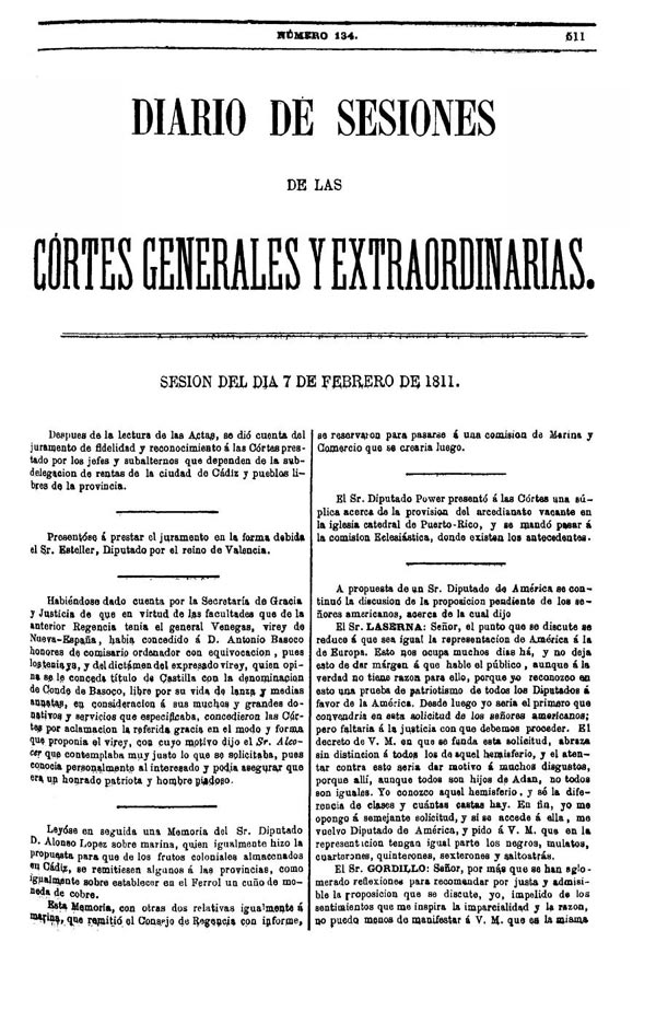 Diario de sesiones de las Cortes Generales y Extraordinarias- 1811Núm. 97 (01-01-1811) al núm. 454 (31-12-1811) |