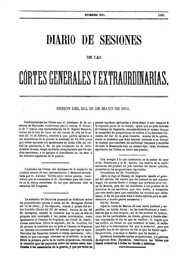 Diario de sesiones de las Cortes Generales y Extraordinarias- 1811Núm. 97 (01-01-1811) al núm. 454 (31-12-1811) |