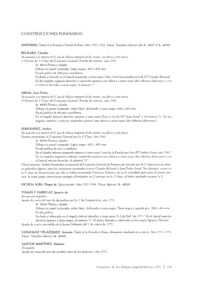 Inventario de los dibujos arquitectónicos de los siglos XVIII y XIX) en el Museo de la Real Academia de Bellas Artes de San Fernando (III)