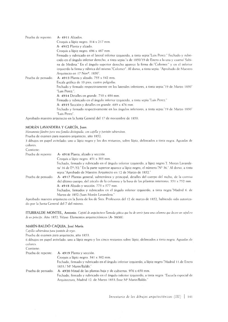 Inventario de los dibujos arquitectónicos de los siglos XVIII y XIX) en el Museo de la Real Academia de Bellas Artes de San Fernando (III)