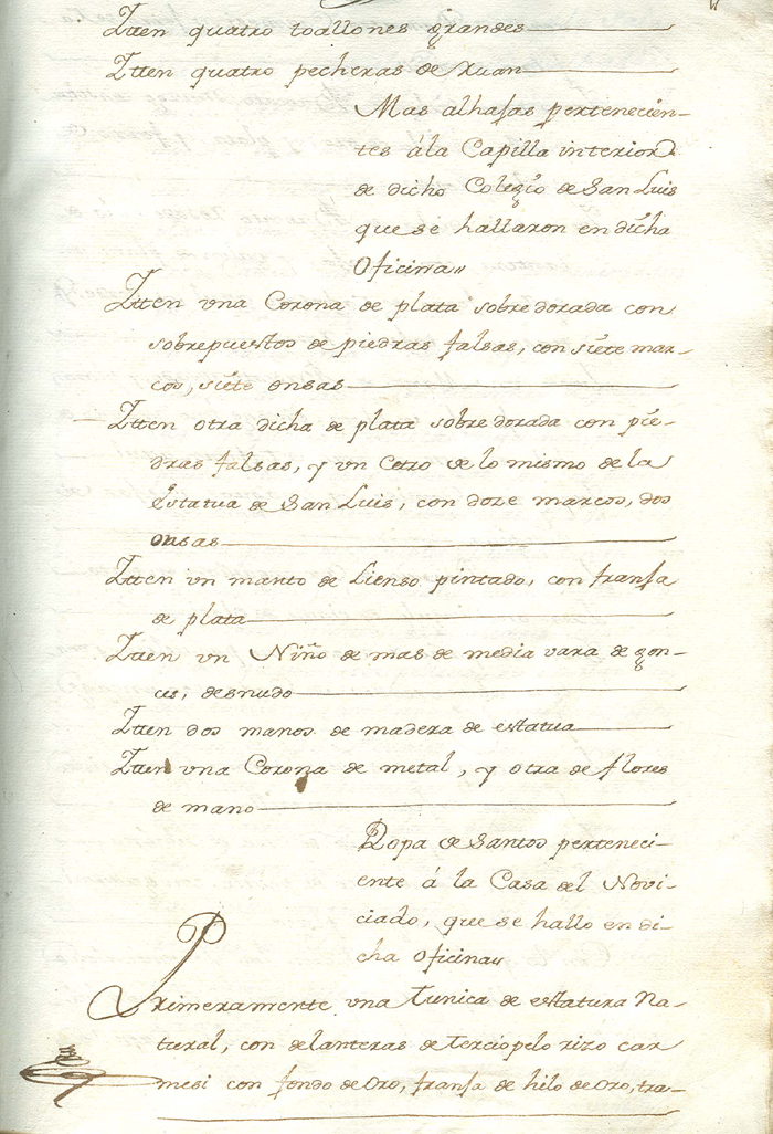 Testimonio del sequestro del Colegio de S. Luys y Universidad de S. Gregorio |